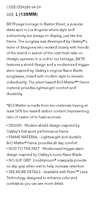BXTR --- FIT: MEDIUM FRAME COLOR: MATTE DESERT TAN LENS COLOR: PRIZM RUBY POLARIZED: NO -- 9280 - 04