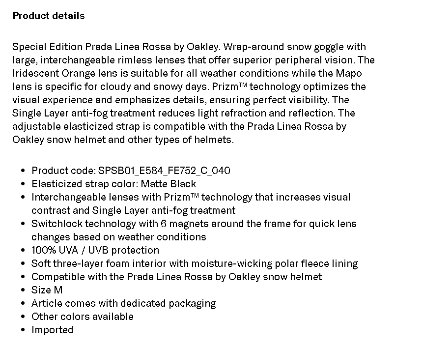 Prada Linea Rossa by Oakley snow goggle with interchangeable lenses
