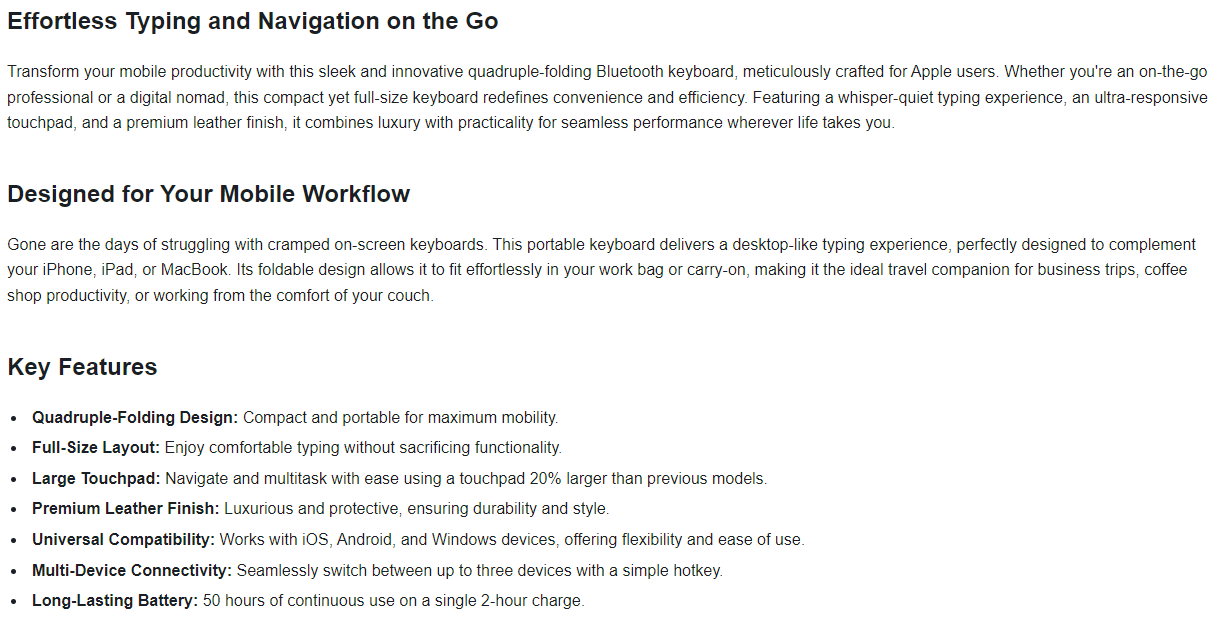Quadruple Folding Wireless Bluetooth Keyboard with Touchpad for Apple Devices