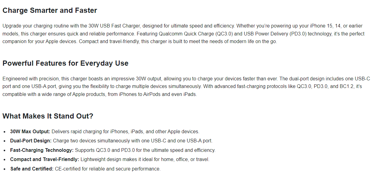 Product Message : 30W USB Fast Charger