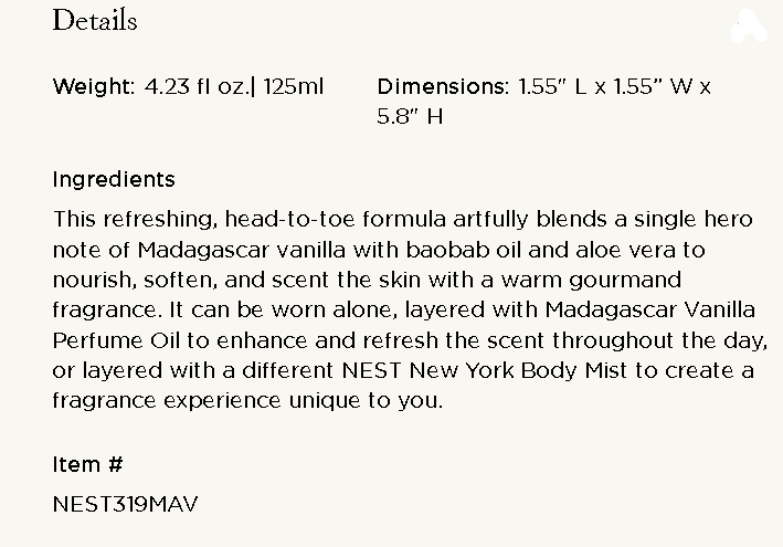 Madagascar Vanilla Body Mist