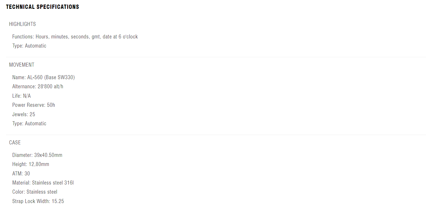 This Seastrong Diver Extreme Automatic GMT comes in a 39x40.50mm case with a rubber strap. The automatic movement boasts a 50h power reserve. The watch offers hours, minutes, seconds, GMT and date at 6 o'clock features.