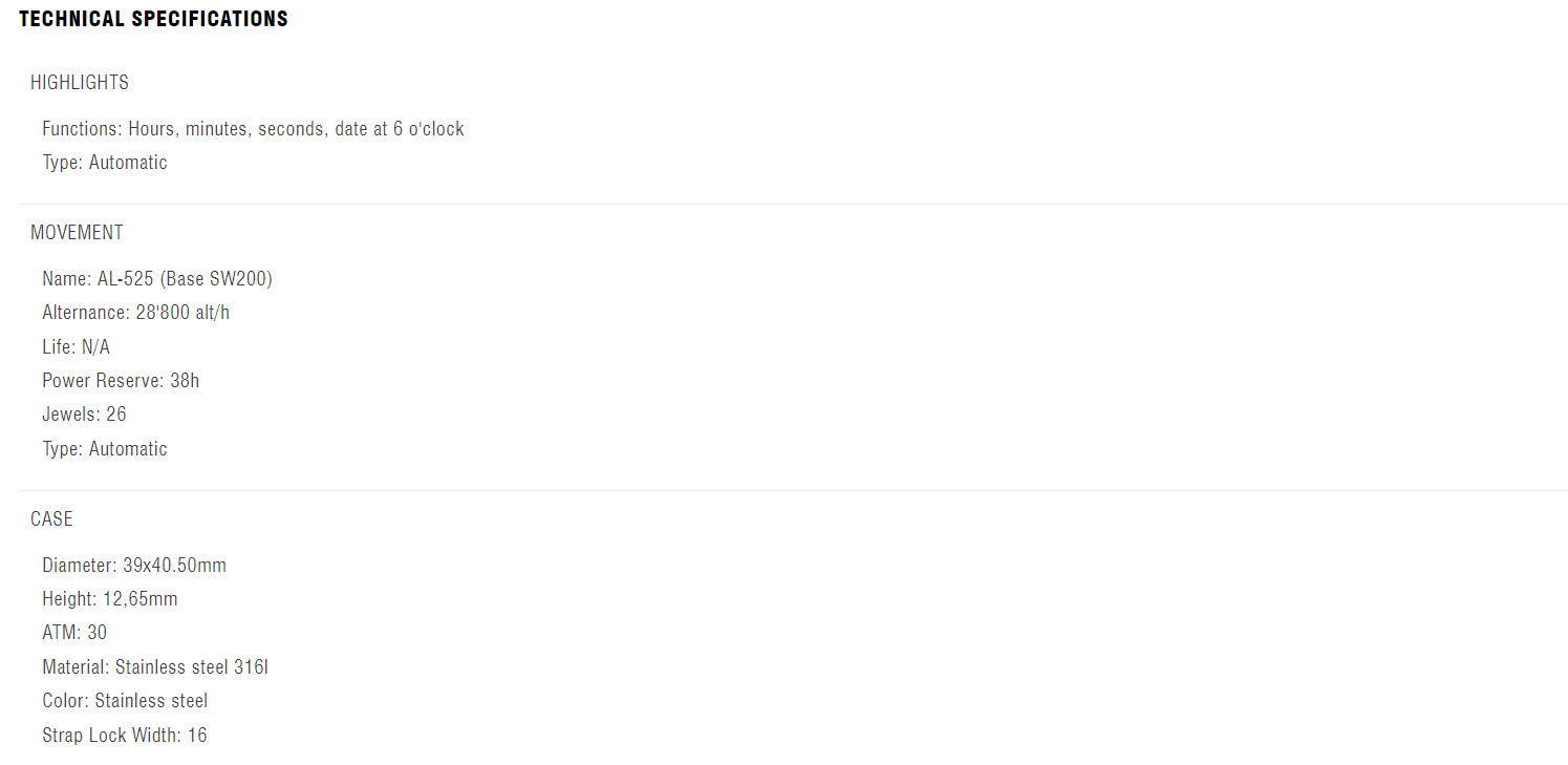 This Seastrong Diver Extreme Automatic comes in a 39x40.50mm case with a rubber strap. The automatic movement boasts a 38h power reserve. The watch offers hours, minutes, seconds, and date at 6 o'clock features.