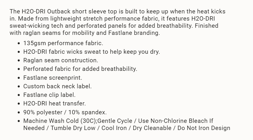 H2O Dri Outback Short Sleeve Top