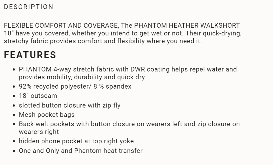 Phantom Heather Walkshort 18