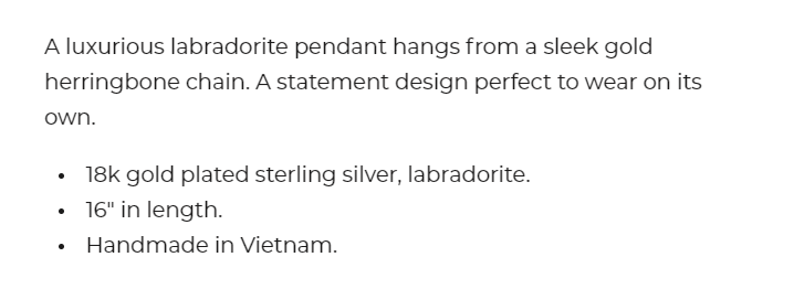 Yasmine Necklace Gold Labradorite