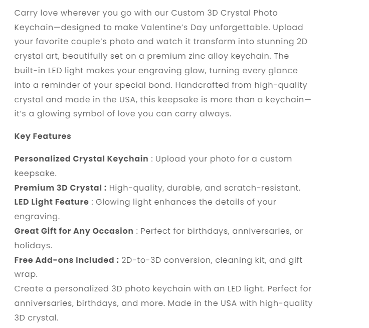 Custom 3D Crystal Photo Rectangle Keychain – Valentine Gift