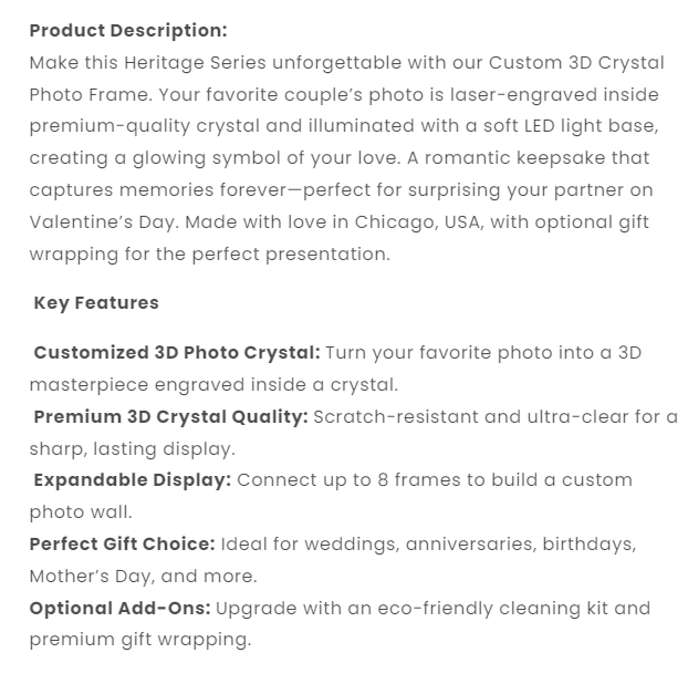 Custom Crystal Photo Keychain with LED Light - Heritage Series