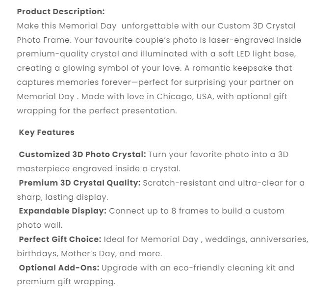 Custom Crystal Photo Keychain with LED Light - Memorial Day