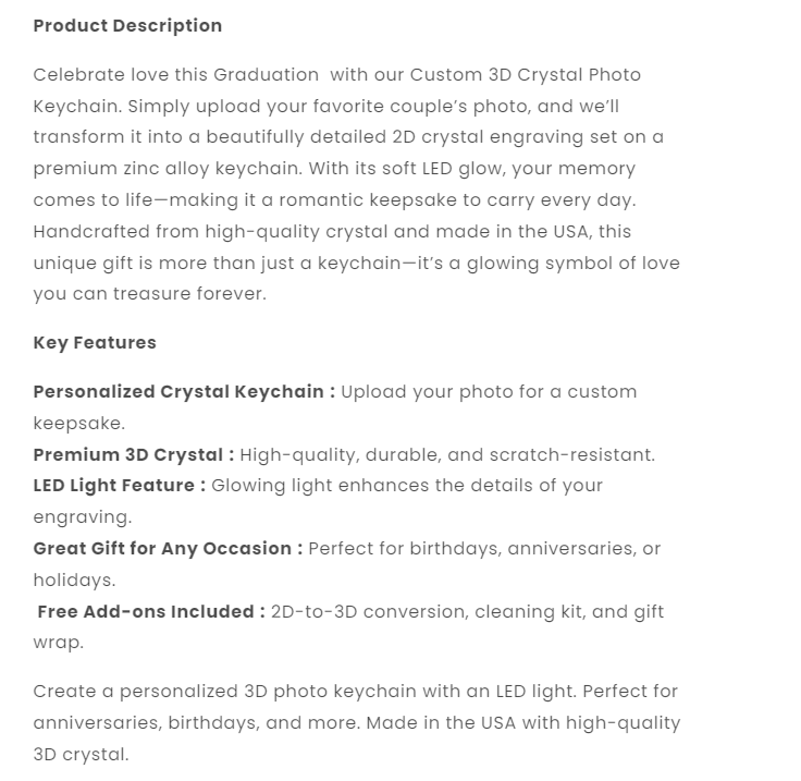 Graduation Custom 3D Crystal Photo Keychain