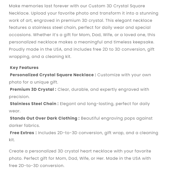Halloween Square-Shaped 3D Crystal Necklace