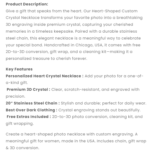 Heart-Shaped Crystal Photo Necklace – Mother's Gift for Her
