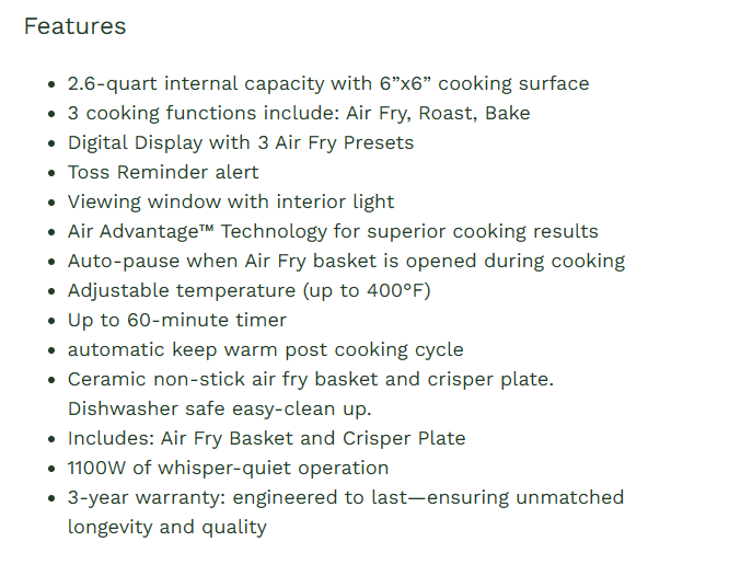 2.6-qt Basket Air Fryer