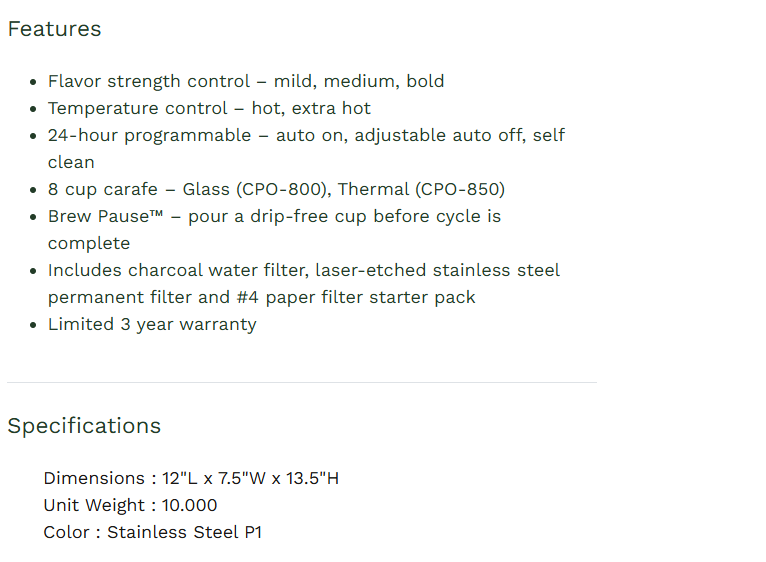 PurePrecision™ 8 Cup Pour-Over Coffee Brewer