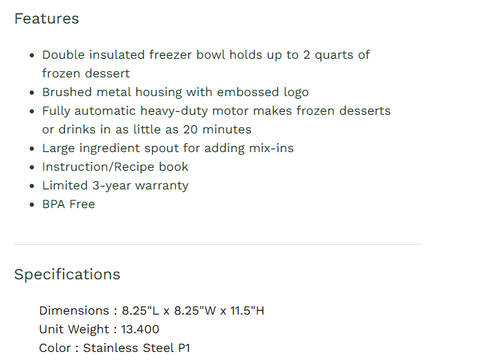 Pure Indulgence 2 Quart Frozen Yogurt-Sorbet & Ice Cream Maker