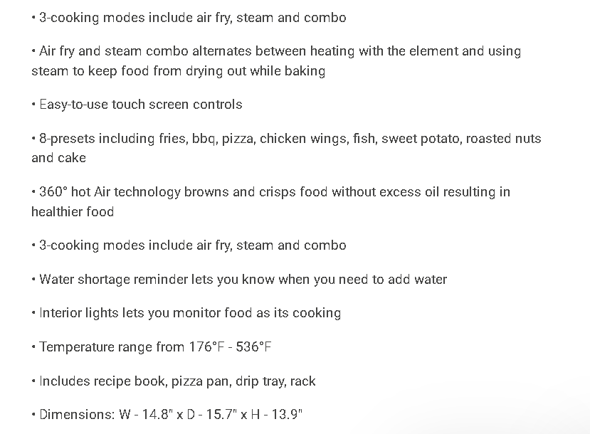 15.9 qt. 3-in-1 Air Fryer Cooking with Steam, in Black