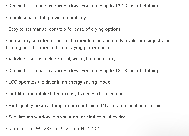 3.5 cu. ft. White Compact Electric Dryer