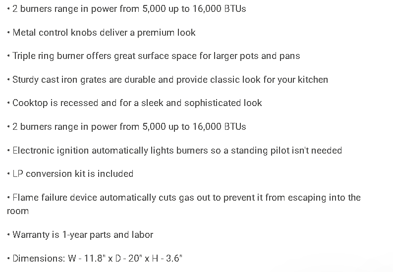 12 in. Gas Cooktop in Stainless Steel with 2 Burners Including Triple Ring Burner