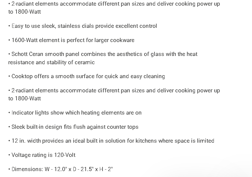12 in. Radiant Electric Ceramic Glass Cooktop in Black with 2 Elements