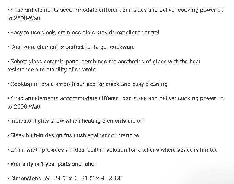 24 in. Radiant Electric Cooktop in Black with 4 Elements