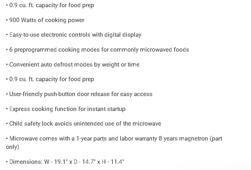0.9 cu. ft. 900 Watt Countertop Cooking in White