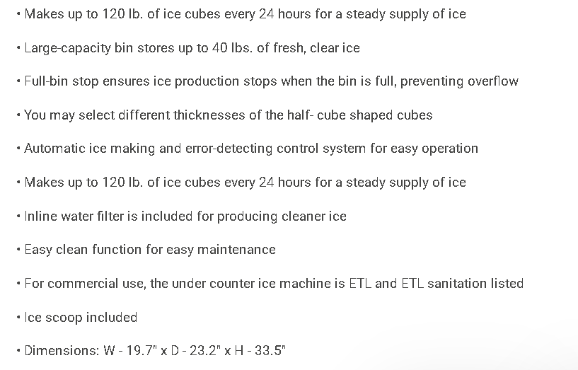 120 lbs. Freestanding Commercial Ice Maker in Stainless Steel