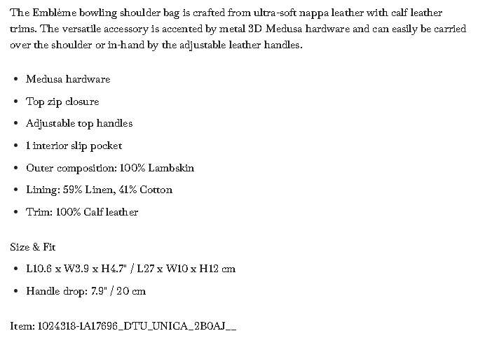 Emblème Nappa Bowling Bag