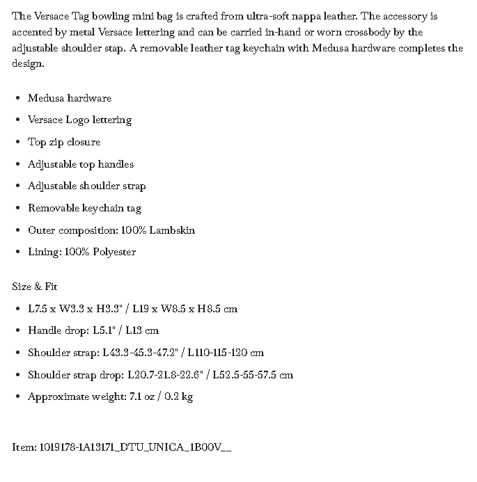 Versace Tag Nappa Bowling Mini Bag