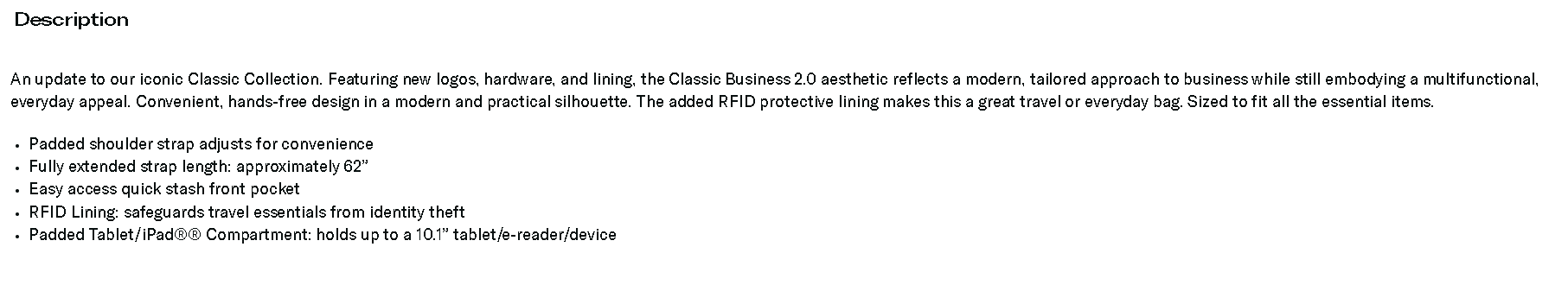 Classic Business 2.0 RFID Crossbody