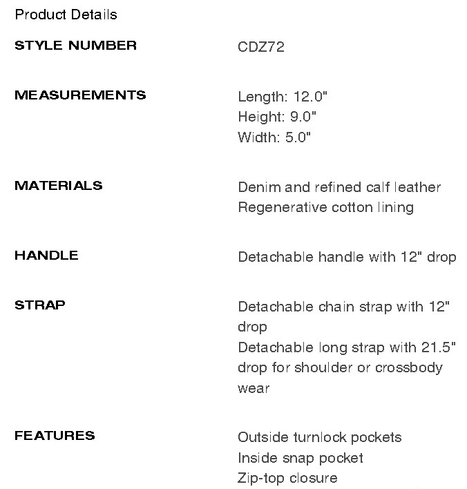 Pocket Juliet Bag 30 In Regenerative Cotton Denim With Quilting