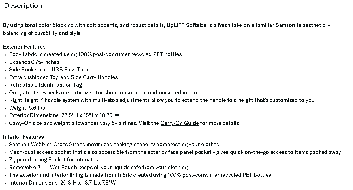 UpLIFT Softside Carry-On Spinner