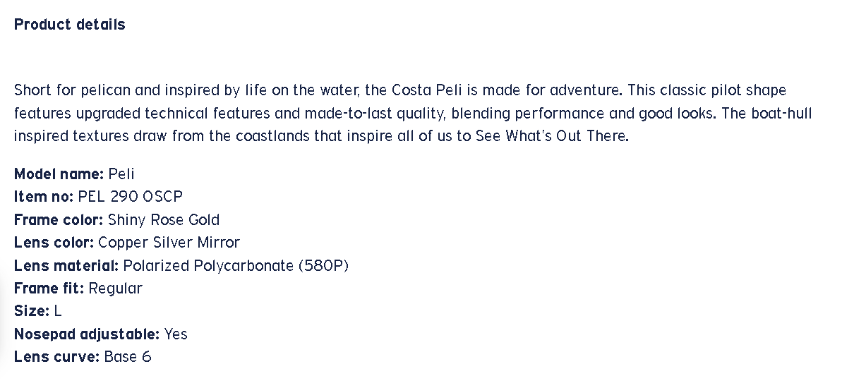 FIT: MEDIUM FRAME COLOR: SHINY ROSE GOLD LENS COLOR: COPPER SILVER MIRROR 580 GLASS POLARIZED: YES