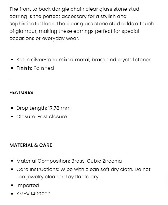 Crystal Stud Chain Dangle Drop Earrings