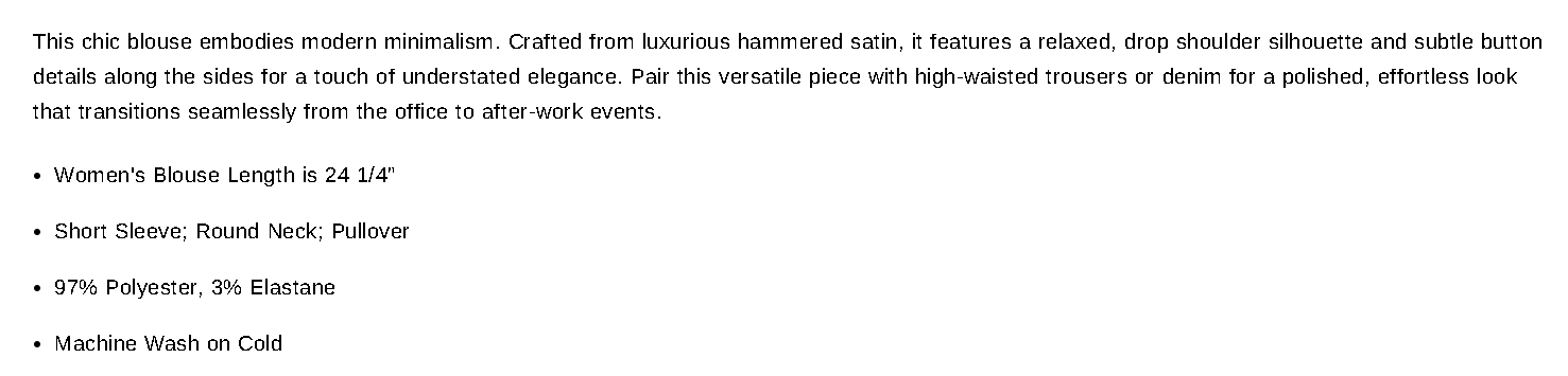 Button Detail Blouse, Hammered Satin
