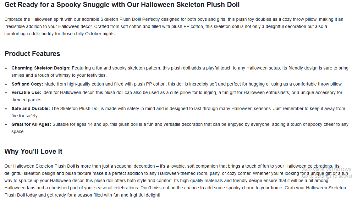 Halloween Skeleton Plush Doll