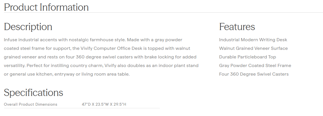 Vivify Computer Office Desk in Gray Walnut