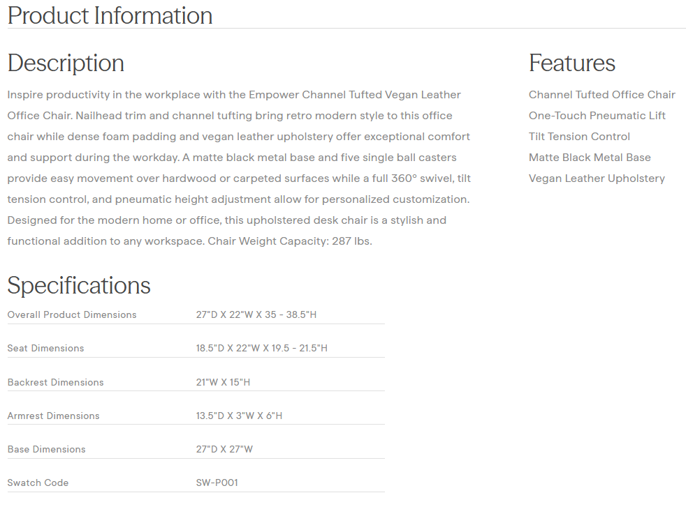 Empower Channel Tufted Vegan Leather Office Chair in Black Tan