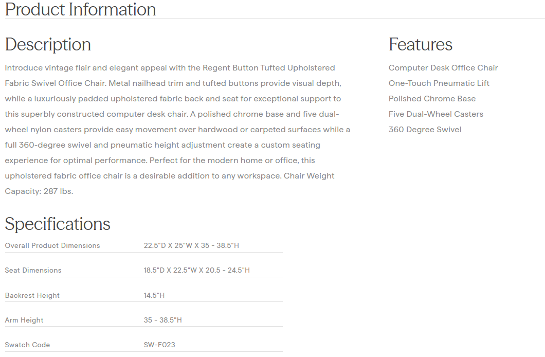 Regent Tufted Button Swivel Upholstered Fabric Office Chair in Azure