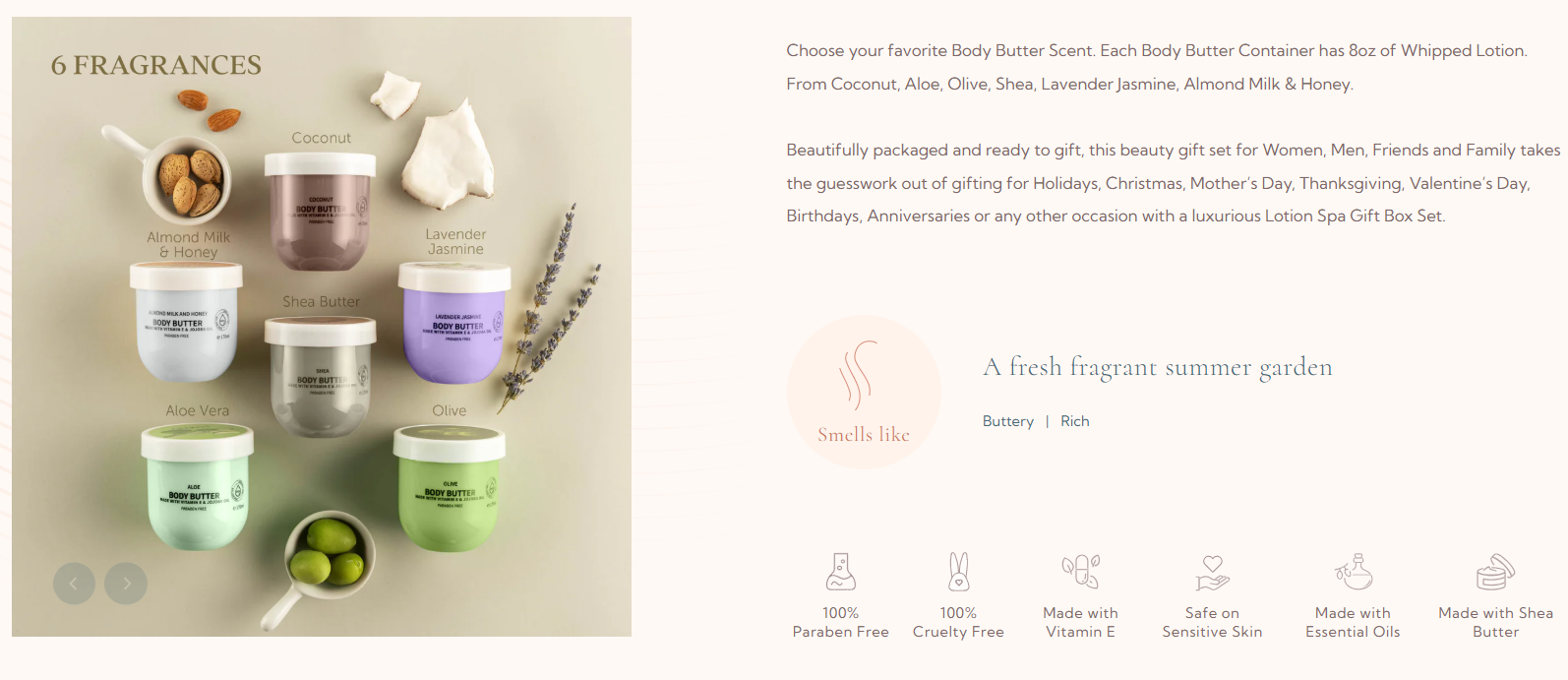 Choose your favorite body butter scent. Layer and mix them for personalized scents. These creams soothes sensitive skin, we've also added oat milk and calming lavender oil. Bow down!