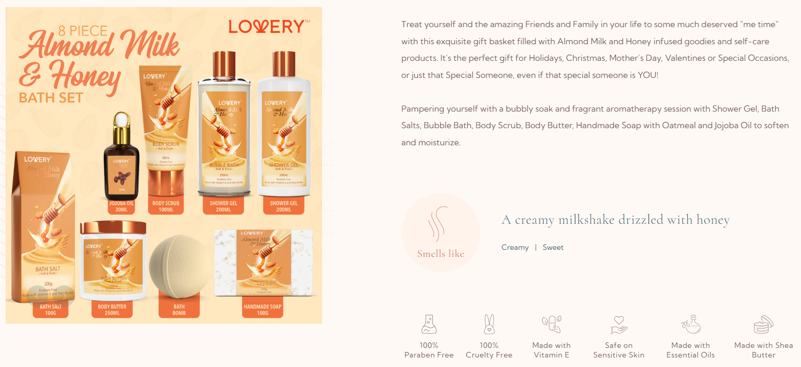 Almond Milk & Honey Home Spa Gift Set - 9Pc Bath and Body Kit