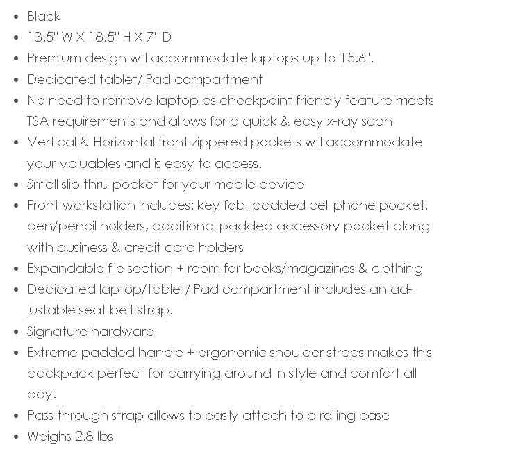 `Tech Exec Backpack Checkpoint Friendly