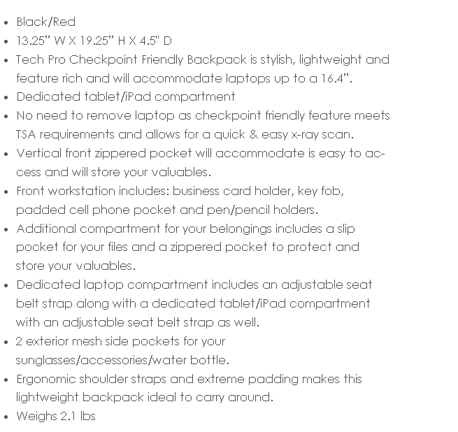 Tech Pro Backpack Checkpoint Friendly