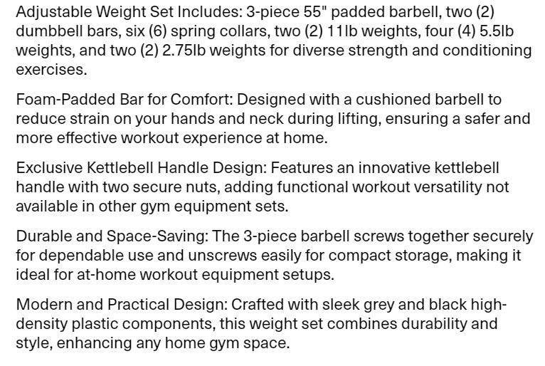 US Weight 54 Pound Adjustable Weight Set with Barbell, Dumbbells, and Kettlebell Handle – Versatile Exercise Equipment for Home Gym Workouts