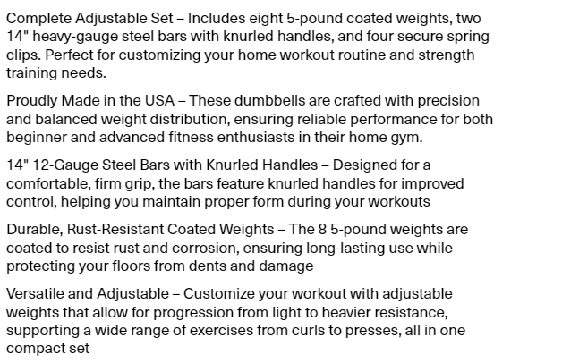 US Weight Adjustable 42LB Dumbbell Set with Spring Clips