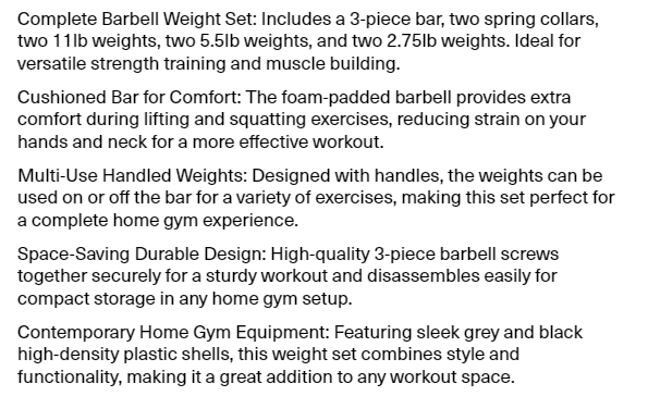 US Weight 43 LB Barbell Weight Set with 55" Adjustable Bar - Home Gym Strength Training Equipment
