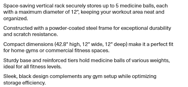 Lifeline Fitness Medicine Ball Rack - Verticle 5-Tier Rack for Home Gym Storage