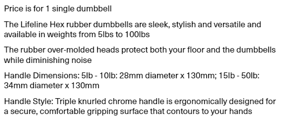 Lifeline Fitness Hex Rubber Dumbbells - Multiple Weight Options