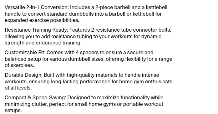 Lifeline Fitness Dumbbell Converter Set – Transform Dumbbells into Barbell & Kettlebell with Resistance Training Features