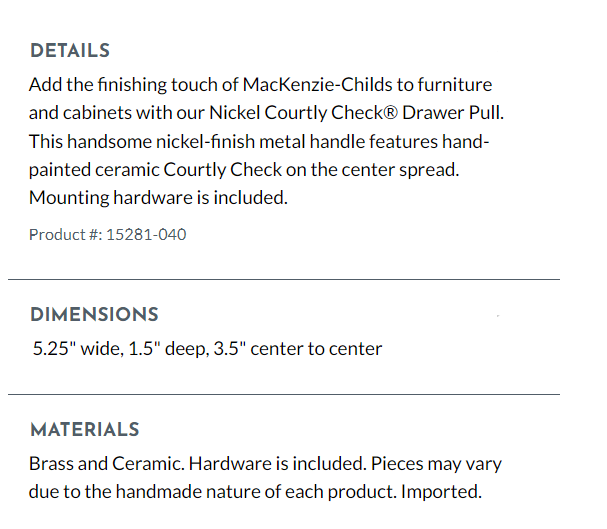 Courtly Check Nickel Drawer Pull