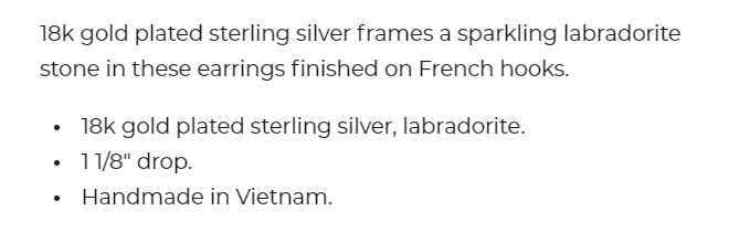 Pilar Earrings Gold Labradorite